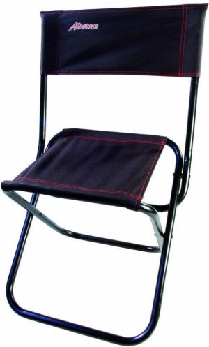 Stoel met een leuning gemaakt uit 19 mm buis. De stoel heeft een comfortabele zithoogte van 42 cm.