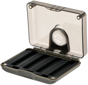 De Hook Safe is de perfecte opbergoplossing om je haken in perfecte conditie te houden, zeker als je de tijd hebt genomen om ze met de hand te slijpen! De nieuwste toevoeging aan de Korda ‘Safe’ serie is ontworpen om netjes in de Korda Tackle Box te passen en biedt plaats aan 67 individuele haken, in maten van 2 tot 8. Het siliconen inzetstuk met gleuf is zo ontworpen dat elke individuele haak veilig op zijn plaats blijft, zonder het risico dat de punt wordt beschadigd wanneer de haak in de Hook Safe wordt gedaan of eruit wordt gehaald. De Hook Safe zelf is gemaakt van slagvast hard plastic, met een magneetsluiting om ervoor te zorgen dat hij tijdens het vervoer niet open kan gaan, maar wel heel gemakkelijk te openen en te sluiten is wanneer dat nodig is. Het deksel heeft een ingebouwde, opklapbare vergrotingslens, die kan worden gebruikt om haakpunten te controleren, en wordt op zijn plaats gehouden door een magnetische sluiting wanneer het niet in gebruik is. De Hook Safe is ook ideaal voor diegenen die gebruik maken van rigs waarbij een hair apart wordt opgeknoopt – zoals variaties op de spinner rig – omdat het betekent dat je ze van tevoren kunt knopen en netjes kunt opbergen.