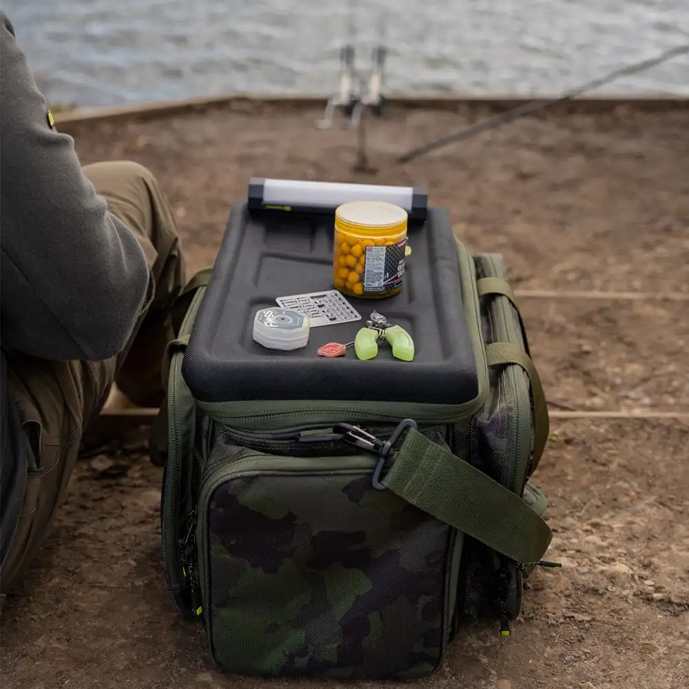 De vistas wordt geleverd met een comfortabele schouderriem en aan elkaar te klikken ergonomisch ontworpen handgrepen, terwijl het voorzien is van een EVA gegoten deksel. De hardtop creëert een perfecte werkplek voor het knopen van rigs en het houden van je essentiële karper materiaal binnen handbereik.